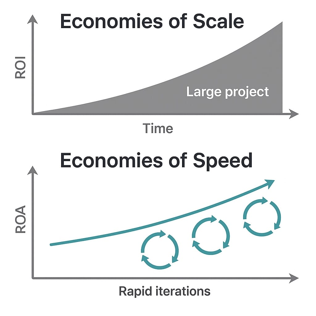The economy of scale is about doing more of the same thing cheaper; the economy of speed is about doing new things sooner.