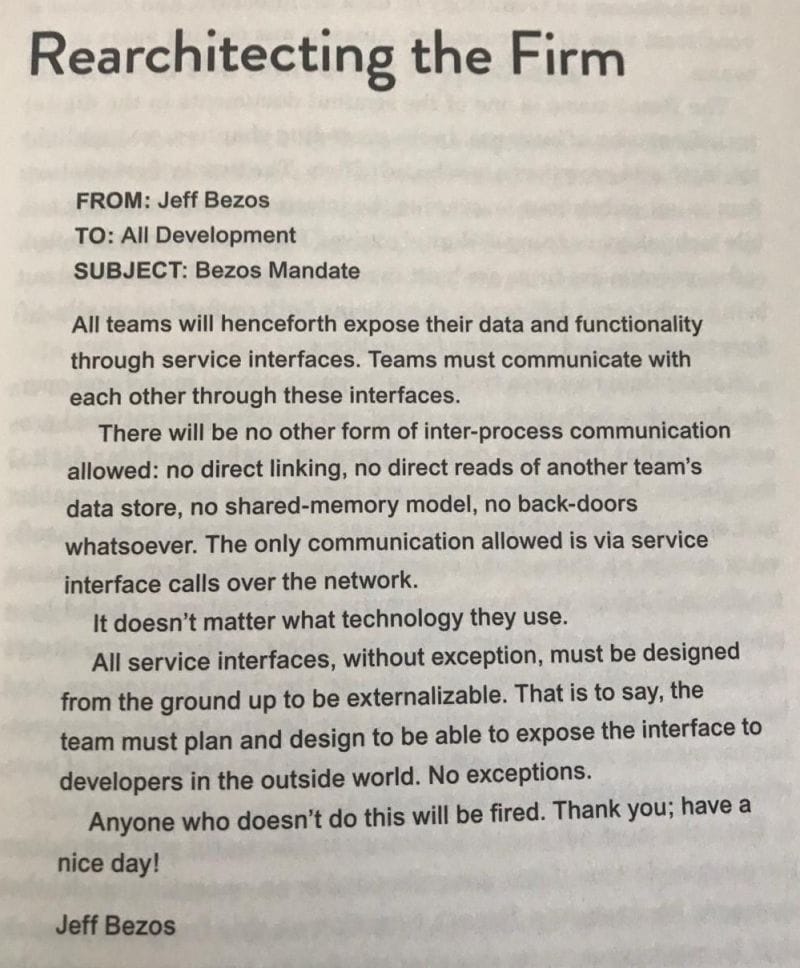 Btw, on top of that, Bezos opted-in for a further radical approach. He modularized all internal services teams early on - which soon resulted in a success with AWS.