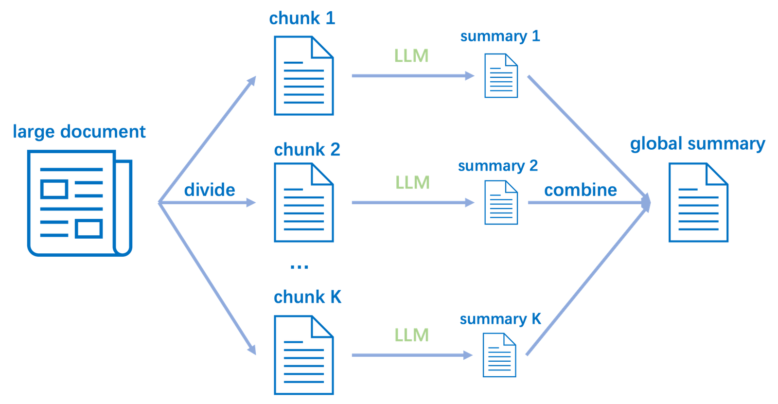 In practice, chunking can be done using simple scripts or with libraries. For example, we might use a Python function to split text by a max length: